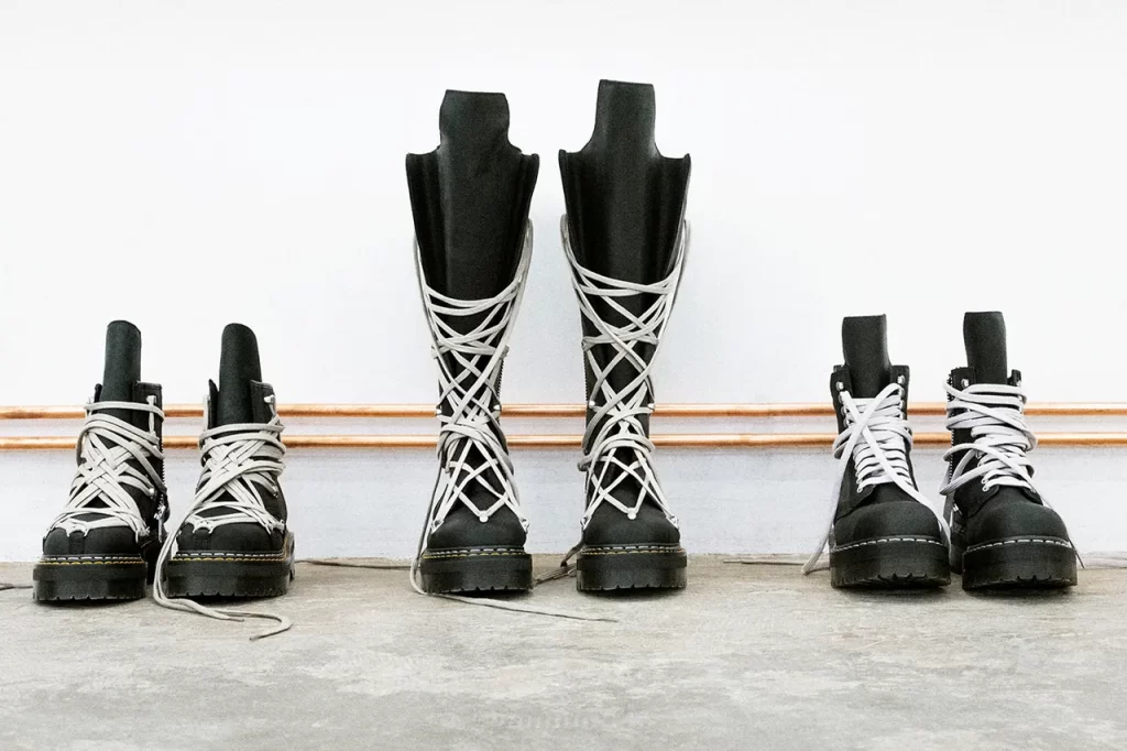 Rick Owens 與 Dr. Martens 的合作不斷深化,推出了令人驚艷的「暗黑之王」系列。這一系列包括 1860 Pentalace Boot、1460 Megalace Boot 和 Steel Toe Boot 三款靴子,均以黑色 Republic Leather 製作,展現獨特的設計美學與強烈的前衛風格。