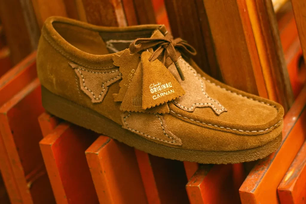 英國鞋履品牌Clarks Originals與里約熱內盧街頭服飾品牌Carnan展開聯名合作,推出Wallabee及Desert Trek兩款鞋型。全新設計融合巴西獨特文化,並在皮革上以手縫技術展現巴西地圖,增添文化意義,鞋款限量發售,售價自R$2,399起。