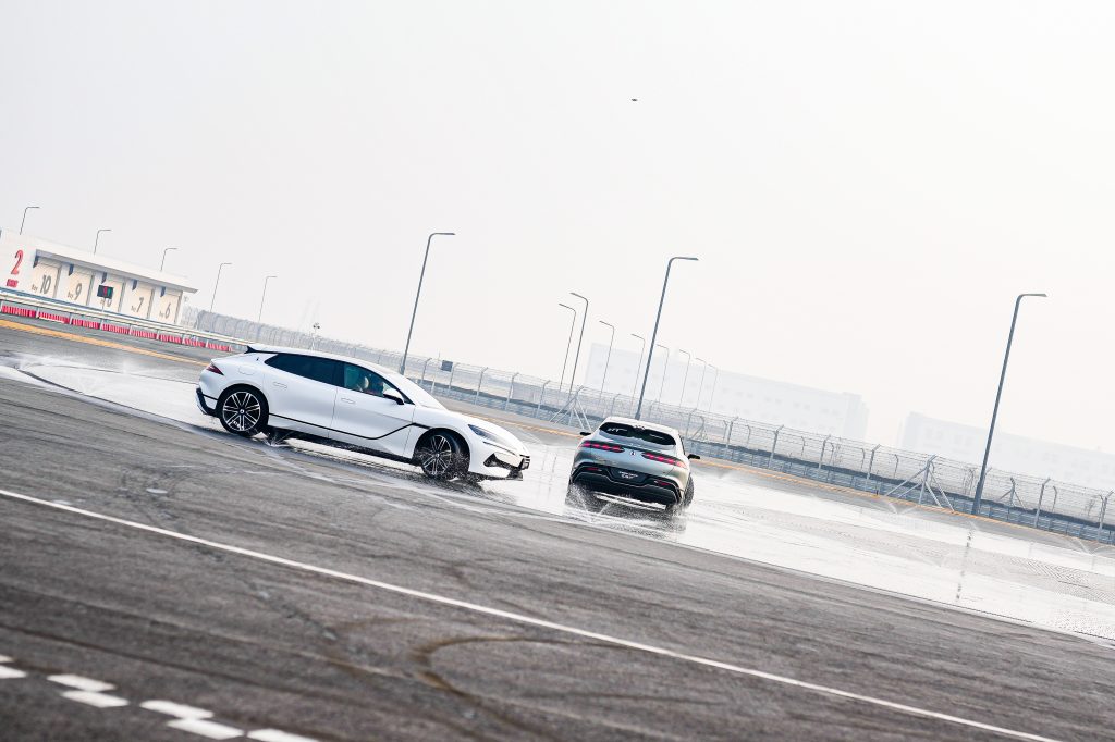 今次7個項目中有3個我們未能試到,其一是水池因當日氣溫早上只有2度令水池表面結了一層薄冰,所以只能作罷。另一是低摩擦環道,廠方安排了兩部Denza Z9 GT作示範表演,兩車先在由3萬多塊玄武岩磚組成的環道上甩尾「拍跳」,然後再於環道外的乾地繞圈,可惜未能親身體驗到該車在可控和失控之下的表現,不過在下一個模擬冰面項目就玩得好暢快。