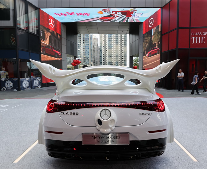焦點之一為藝術裝置《DriveBone》,將新CLA的設計語彙轉化為柔性生物形態,例如將車側鏡變化為耳朵、鬼面罩設置於「腹部」、軚盤則化作動力核心。這件大型3D裝置不單結合了汽車工藝與潮流美學,更成為場內的打卡熱點。展覽期間,品牌亦推出Mercedes-Benz x OFFGOD:TATE限量聯乘潮物,專為新CLA車主而設,延續車輛設計概念至日常穿搭層面。