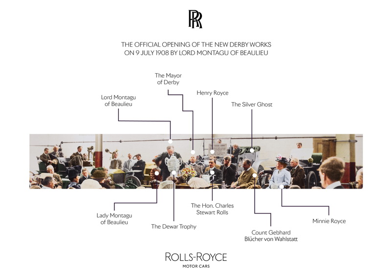 工廠開幕當日的場面,亦反映品牌當時的地位與野心。重要人物雲集,Silver Ghost亦在場展示,象徵品牌技術實力與市場定位。這一刻確立了Rolls-Royce在汽車工業中的位置,同時亦建立起對品質的基本要求。