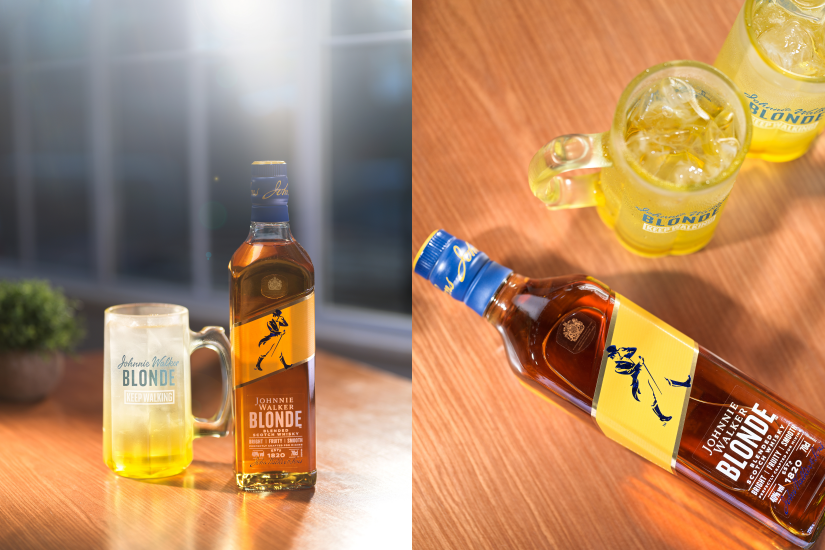 Johnnie Walker 推出全新 BLONDE 波浪威士忌,以無煙燻的果香及雲呢嗱焦糖甜味為賣點,主打輕盈口感與混搭潛力,專為 Z 世代及輕飲風潮而設。亮黃色瓶身設計搶眼,建議搭配雪碧或檸檬氣泡水,展現品牌創新形象。