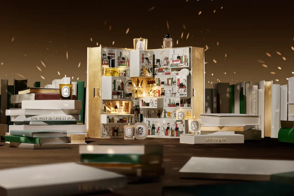 Diptyque 這個法國高級香氛品牌於每年秋季推出 Citrouille(南瓜)香氛蠟燭,以其獨特的香氣結合深受熱愛。此次的節日倒數月曆展示魔幻巴黎書店,內含25款香氛驚喜,令粉絲們期待不已,目前在品牌官方網店已可購買,售價495美元。