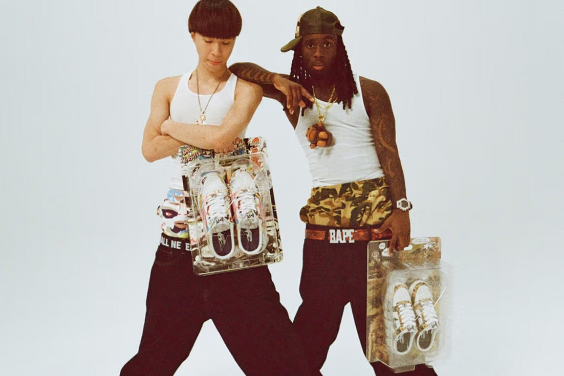 La collection BAPE By KidSuper a fait ses débuts lors du défilé automne-hiver 2025 de KidSuper à la récente Fashion Week de Paris, révélant une gamme de vêtements et chaussures aux designs innovants. Grâce à la vision unique de KidSuper, cette collection réinvente les éléments visuels emblématiques de BAPE, comme le camouflage iconique de la marque fusionné avec les visages emblématiques de KidSuper. De manière créative, le visage de requin du SHARK HOODIE a été inversé, transformé en un visage rieur et amusant. De plus, la boîte à chaussures de la BAPE STA arbore un design au style bande dessinée. La collection complète est prévue pour une sortie officielle en avril.