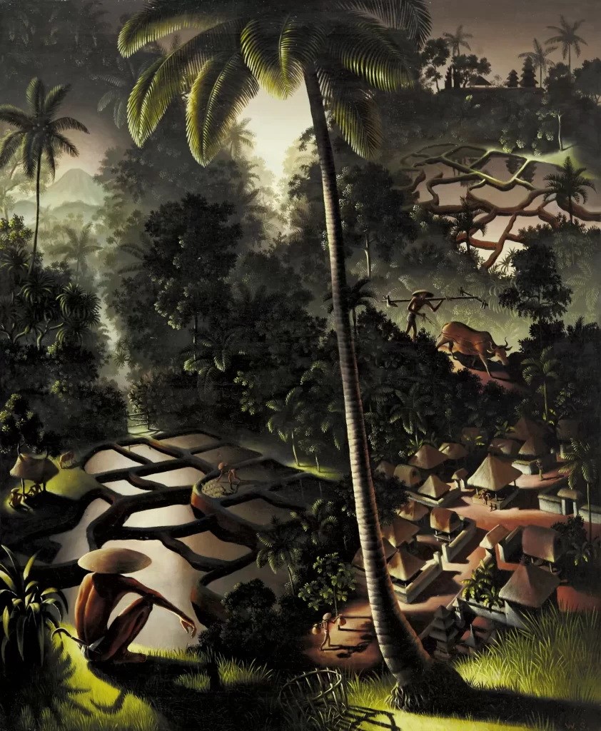 東南亞藝術板塊亦錄得突破,Walter Spies《登高望遠》以港元59,060,000成交,刷新藝術家世界拍賣紀錄。作品描繪峇里島景觀,以細膩筆觸呈現層層遞進的空間感,並透過光線變化營造畫面深度。該作曾多次於市場出現,每次均推高紀錄,今次再創新高,顯示其市場地位持續提升。