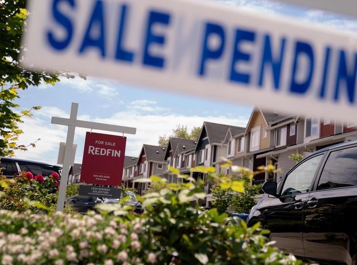 アメリカ合衆国ワシントン州シアトル市のウエストシアトル地区では、2024年6月18日火曜日に「販売中」と「販売保留」の看板が見られました。全米 Realtors 協会は、6月21日に既存住宅販売数のデータを発表する予定です。