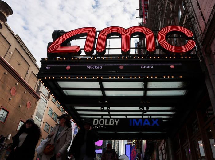 AMCエンターテインメント(AMC Entertainment)は、2025年2月25日、ニューヨーク市マンハッタンのAMC劇場前を訪れる人々の姿が見られます。
