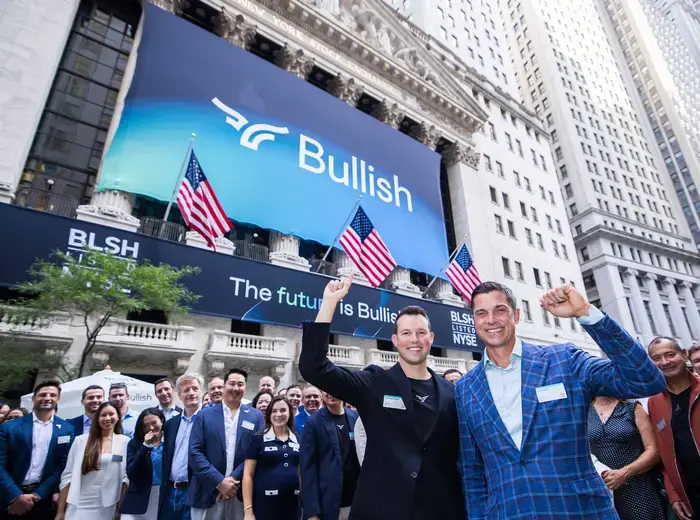 ブルリッシュ(Bullish)のCEOであるトム・ファーリー(Tom Farley)およびチェアマンであるブレンダン・ブルーマー(Brendan Blumer)が、2025年8月13日にニューヨーク証券取引所での上場を祝う様子が報じられています。この上場は、特に同社の名称からも、注目度が高まっています。