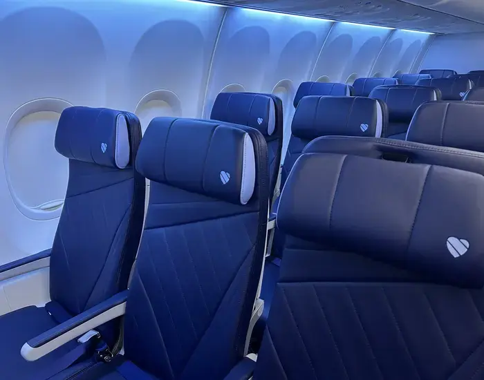 ボーイング737 Max 8機の最初の6列に位置する追加レッグルーム座席は、窓側または通路側が96ドルで提供されており、帰りの便では少し安い価格設定がされています。後方の17~30列目の座席は、「Choice」チケットであれば無料で選択可能です。「Choice Preferred」チケットは、優先的な座席を含み、「Choice Extra」では追加のレッグルーム座席と共に、アルコール飲料などの「プレミアム」飲料が無料で提供されます。