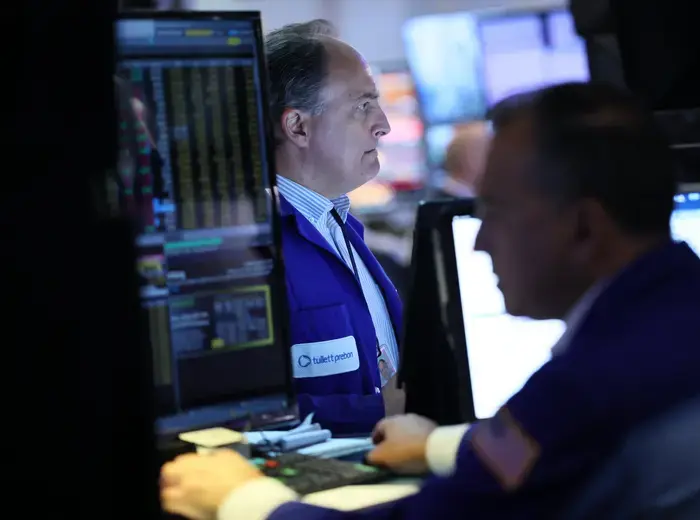 ニューヨーク証券取引所の取引フロアで、トレーダーたちが働いている様子が見られます。最近の市場動向によると、米国株の先物は、NASDAQ総合指数が新たな記録を達成した後、ほとんど変わらない状態で取引が行われています。ダウ・ジョーンズ工業株30種平均の先物は16ポイント(0.04%)上昇し、S&P 500およびNASDAQ 100の先物はそれぞれ0.11%と0.18%上昇しました。