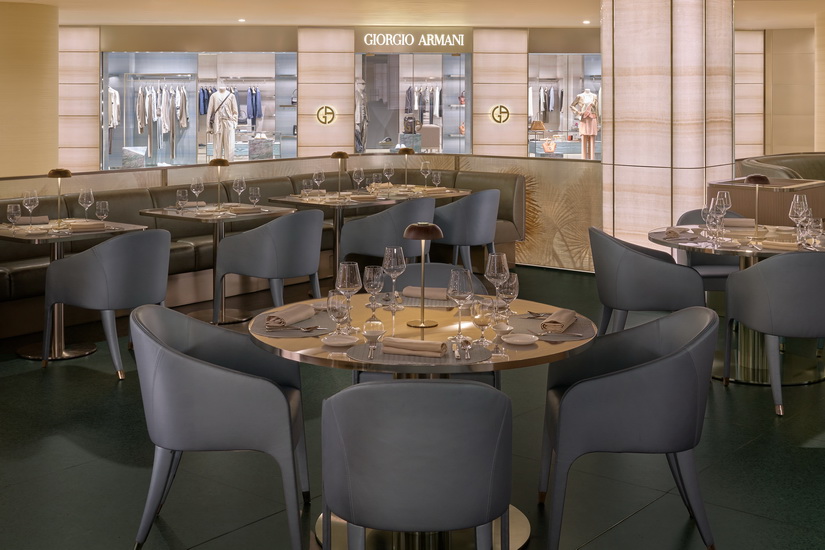 餐飲方面,ARMANI/CAFFÈ 延續 Armani 美食理念,提供涵蓋午餐至晚餐的多樣選擇,包括 Armani 米蘭燉飯、番茄意粉及米蘭小牛排等經典意式料理,亦供應薄餅及沙律,讓顧客於購物之餘能輕鬆享受舒適用餐時光。飲品選擇豐富,包括鮮榨果汁、特調咖啡及熱飲,同時供應 Armani/Dolci 精選花果茶及茶飲,簡約的料理風格配合國際風味,以頂尖食材及精緻擺盤呼應 Giorgio Armani 對生活美學的追求,令用餐體驗更顯細膩。