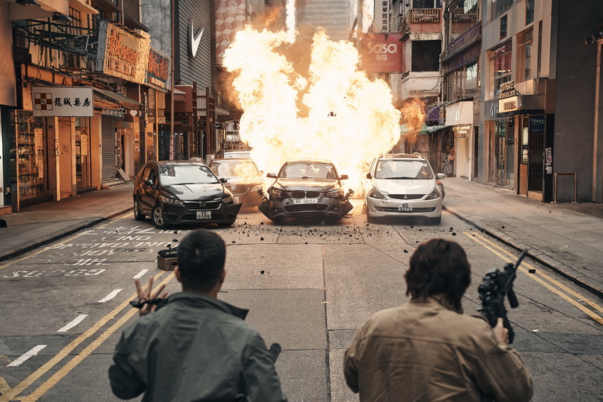 導演吳家偉堅持以實景配合真槍及真爆破效果拍攝,團隊在鬧市封路取景,動用多組爆破裝置及特技火花,營造子彈橫飛的壓迫氣氛。從公開的拍攝花絮可見,現場涉及多角度機位同步拍攝,配合大量臨時演員及圍觀人群,令整場槍戰戲更具層次。街道招牌、商舖櫥窗與爆破煙霧交錯,令觀眾在大銀幕上感受到近距離的震撼。