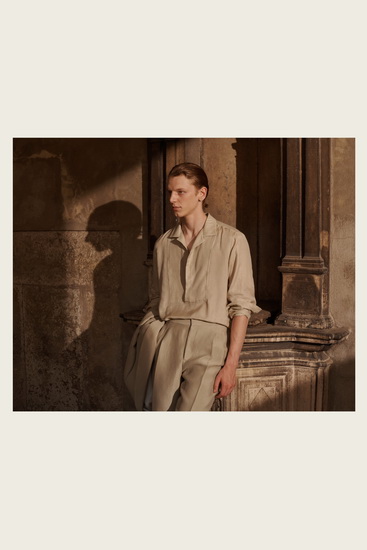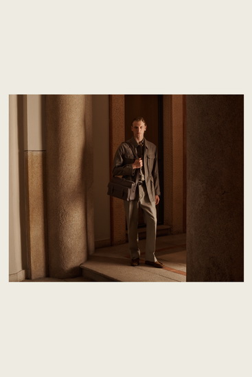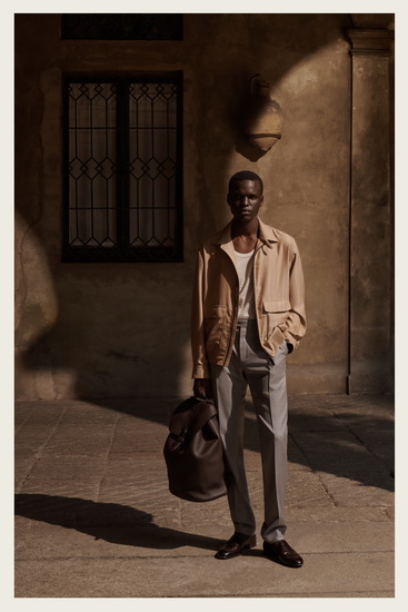 短褲與襯衫的搭配亦經過精心設計,加上 Brioni 標誌性的內襯處理,完美呼應整體輕盈主題。系列的配件如涼鞋、樂福鞋、拖鞋以及大容量皮革袋均選用柔軟材質製成,讓穿著者即使在戶外也感受到舒適與從容。