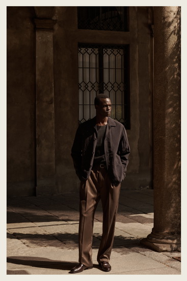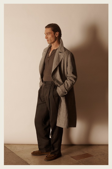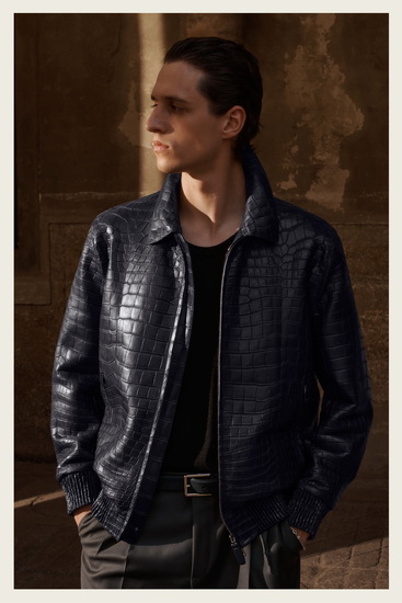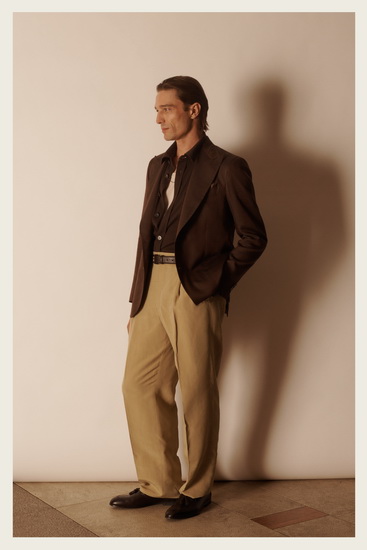 Brioni 招牌的西裝與外套在本季依舊保持靈動特性,具備多場景適應性,不僅功能實用,也兼顧高端質感。輕便的針織衫與正式晚裝在同一系列中並存,展現現代男士的多面性需求,而以牛仔布、翻毛皮及皮革製作的外套則為系列增添率性與詩意感。