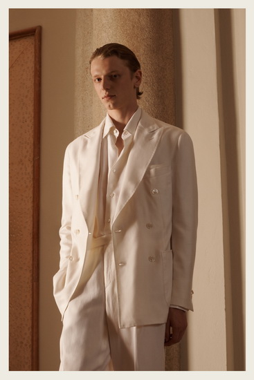 這一系列的設計意圖,是為了在戶外日光與自然光影之中,呈現服裝的真實面貌——輕盈、通透,並隨步伐律動。正如 Brioni 所信奉的哲學:風格應該自然地流動,從不喧鬧,卻讓人無法忽視。