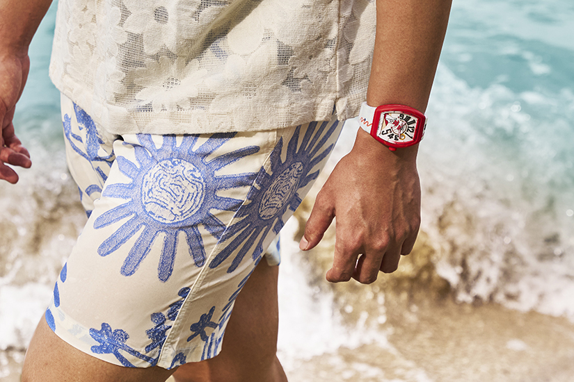 繼2023年首度聯名後,Franck Muller今年再度與日本街頭品牌#FR2合作,推出#FR2NCK MULLER Vanguard Beach限量版腕錶。