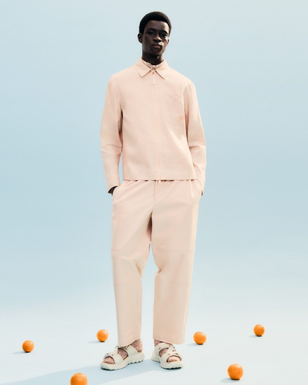 該系列的服飾包括輕盈卻耐用的外套,譬如絎縫背心和羽絨外套,為炎熱的南加州夏季提供完美選擇。布料選擇上則以天然的棉質、高科技麻質帆布以及羊毛、羊絨針織等輕盈面料為主,注重舒適與透氣性。色調方面,粉紅、米白、橙色及藍色的搭配,讓人聯想到加州果園上空的蔚藍天空和醉人的夕陽。