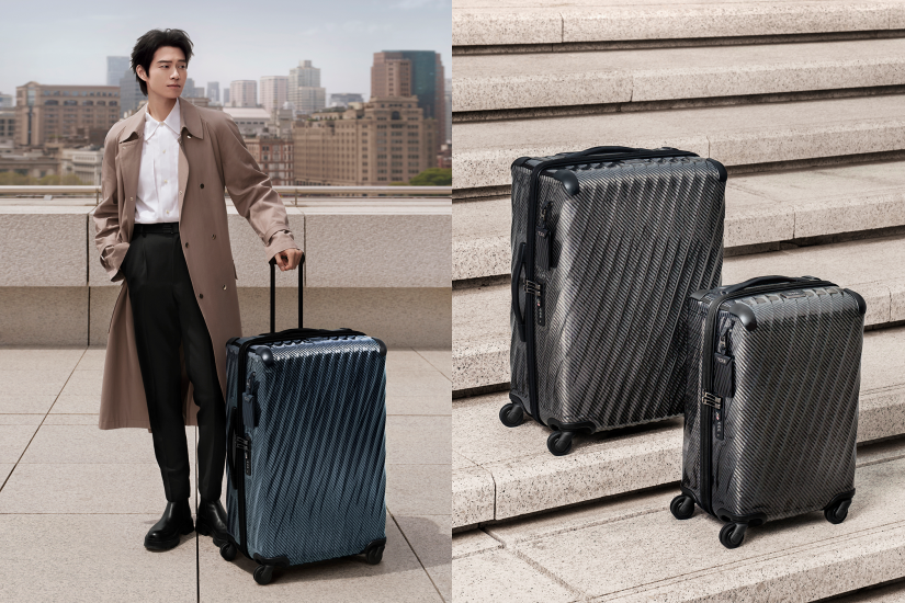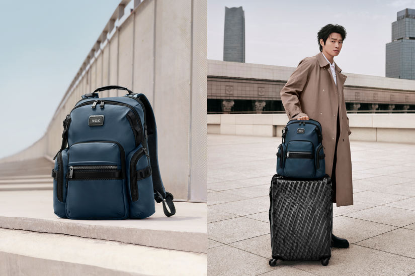 他身邊那只黑石墨色的 19 Degree Lite 國際手提旅行箱(HK$7,000),輕巧靈活,是他每趟出發的默契旅伴;而 Alpha Bravo 系列的海軍藍塗層帆布 Navigation 背囊(HK$5,500),則像他生活中的另一面:有層次、有內涵,耐看也耐用。這些裝備不只是為了收納行李,更是一種準備好走遠路的態度。