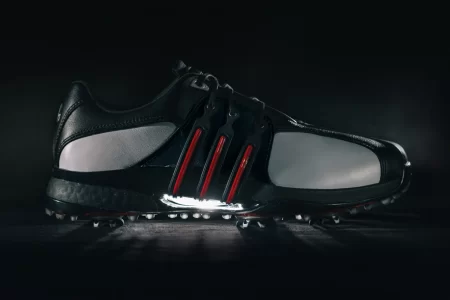 接下來是以鋒利線條著稱的 Weapon 鞋型,其外形接近靴款,展現出歷久彌新的氣質。鞋身則是由米白與綠色皮革拼接而成,其中融入了多處劇集的專屬細節,例如《Stranger Things》主題鞋墊,以及隱藏在鞋舌內側的 Hawkins High School Tigers 吉祥物圖案。此外,與仿舊中底相得益彰,橙色和白色鞋帶選項更是帶出整體的懷舊氛圍。