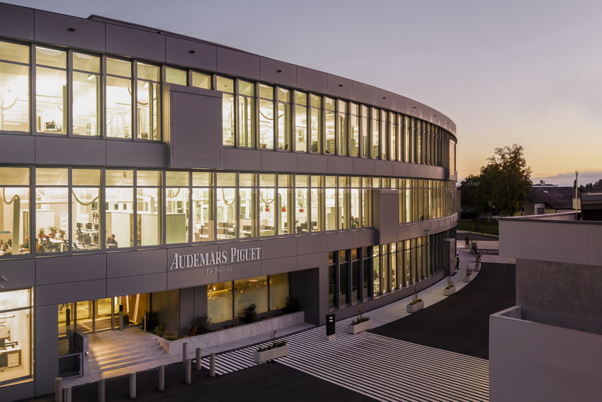 廠房最大亮點之一,是全長321米的玻璃幕牆,使用電致變色技術,能隨室外光線及溫度自動調節透明度,確保室內環境持續舒適,兼顧自然採光與節能效益。建築本身榮獲瑞士Minergie-ECO®認證,充分展現Audemars Piguet對可持續建築標準的重視。