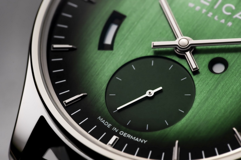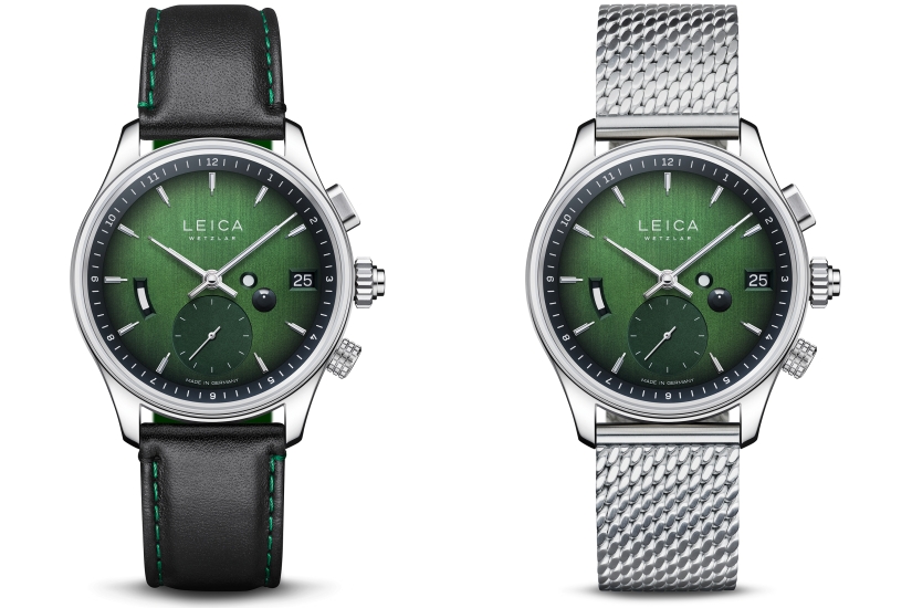 功能方面,Leica ZM 1與ZM 2 Urban Green內部搭載品牌自家研發的手動上鍊機械機芯,其中ZM 1以其專利按壓式錶冠著稱,用家只需輕按錶冠即可停止機芯及重設秒針,讓時間校準更精確快速。這項功能靈感來自Leica相機快門設計,在腕錶領域相當罕見。而ZM 2則進一步加入第二時區功能並配備晝夜顯示,方便經常穿梭不同時區的使用者,讀時一目了然。