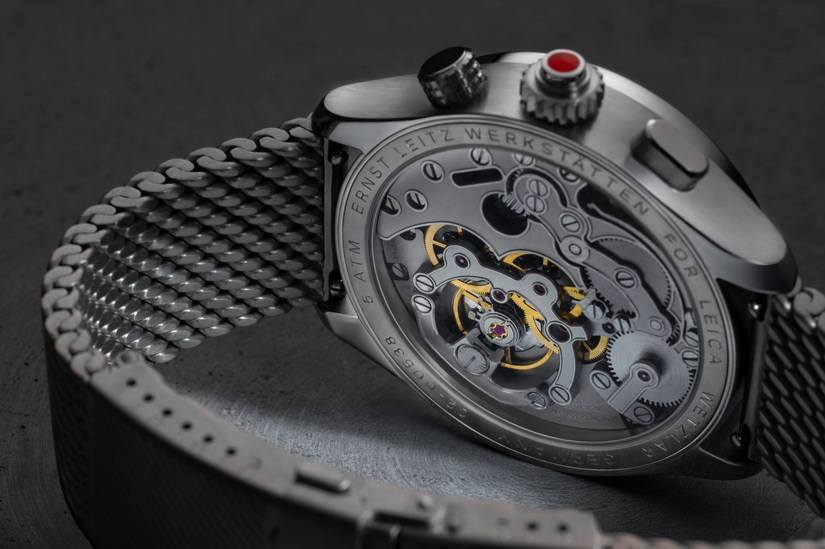 錶盤採用高強度鋁製打造,表面經垂直緞面處理並配上弧形藍寶石水晶玻璃鏡面,整體設計不但防刮耐用,更突顯簡約細膩的德式美感。每枚時標與指針均經鍍銠處理並鑲上鑽石,細節處體現出Leica對精密工藝的重視。錶鏈經工匠打磨,結構堅固且設計符合人體工學,搭配快拆式彈簧杆與可調節安全扣,提升佩戴實用性及舒適度。