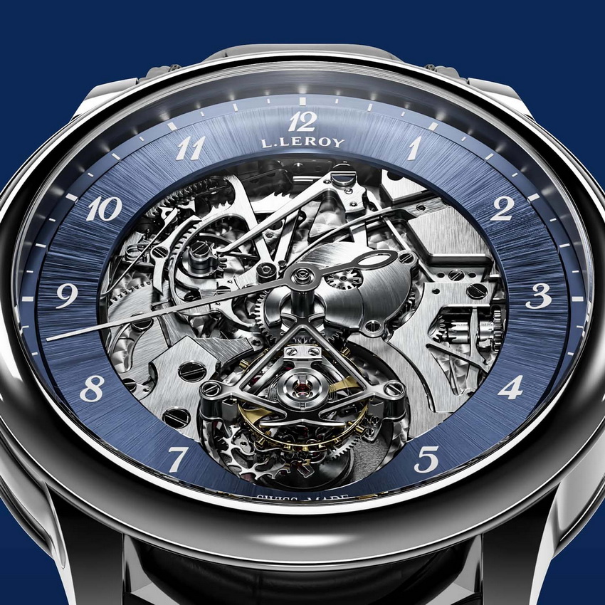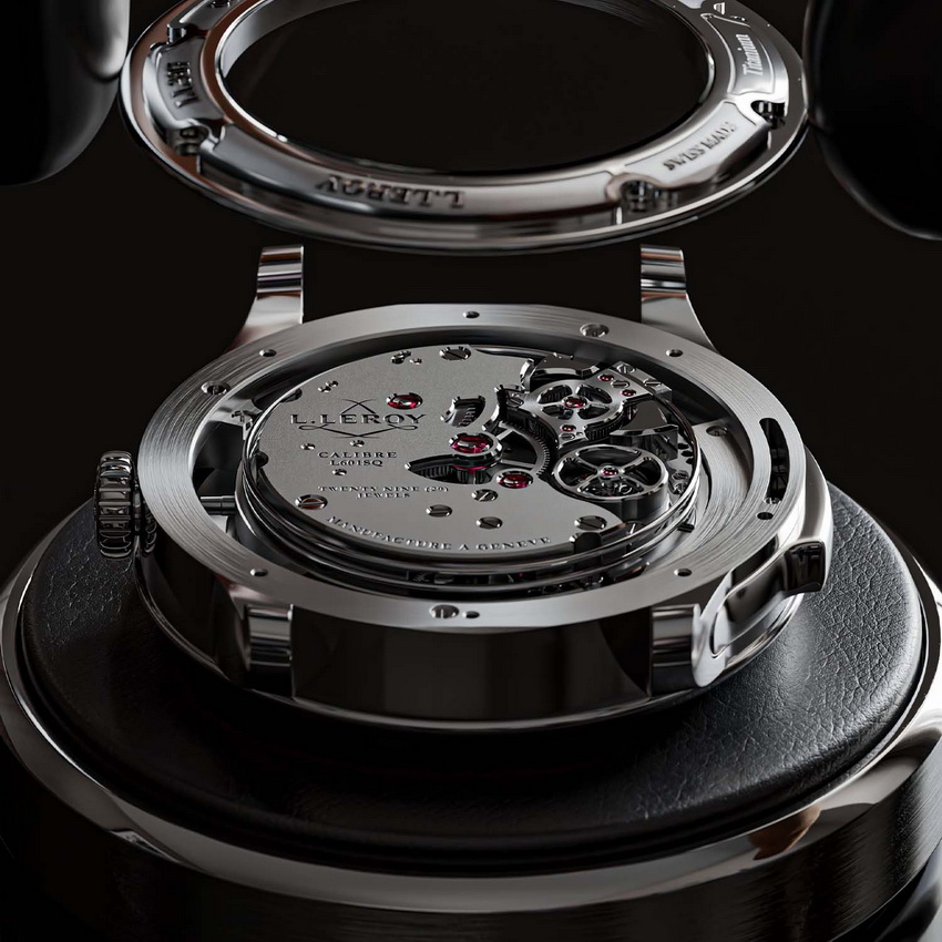 腕錶內部搭載 L.Leroy 自家設計的 L601SQ 手上鍊機芯,震頻為3Hz,動力儲存達90小時。三問報時系統以兩枚拋光鋼錘敲擊雙音簧,報出小時、刻鐘與分鐘,發聲結構可透過透明底蓋清晰觀察。