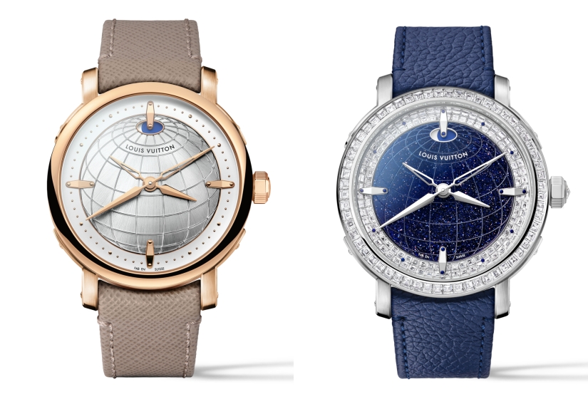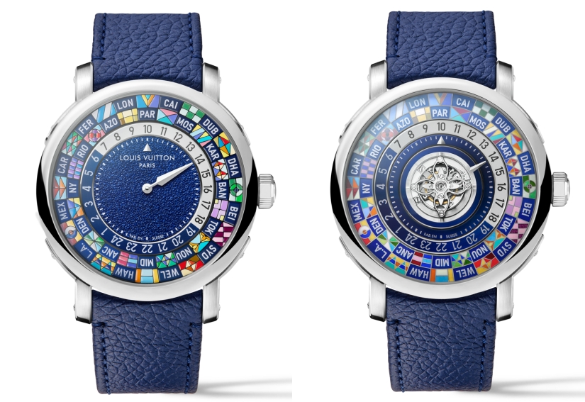 當中兩款焦點作 Escale Worldtime 與 Escale Worldtime Tourbillon,代表 Louis Vuitton 重訪其最經典的世界時腕錶構想。此回兩款皆以鉑金材質呈現,並採用2024年首次出現的40毫米新錶殼設計。錶耳承襲品牌行李箱金屬護角靈感,飾以拋光飾釘,細節處處反映 Louis Vuitton 對自家旅遊文化的承傳。