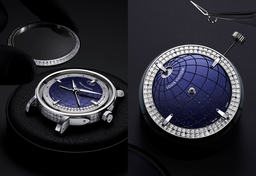 Twin Zone亦推出高級珠寶版本,以鉑金鑲嵌超過300顆鑽石,包括錶圈與錶耳三排隱密式鑲嵌工藝,搭配砂金石錶盤及雕刻子午線與緯線圖案,彷如夜空星圖般閃耀。藍色凸點時標與藍漆日夜顯示,進一步加強視覺層次。