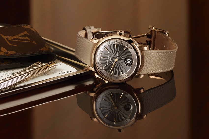 若要從視覺美學轉向聲學領域,Escale Minute Repeater則顯示Louis Vuitton對三問報時複雜功能的掌握。此手動上鍊LFT SO 13.01機芯由La Fabrique du Temps Louis Vuitton與Gérald Genta歷史團隊共同研發,結合跳時、逆跳分鐘及報時功能,整體結構極度緊湊。報時滑桿藏於8時位置錶耳內部,與錶殼設計融為一體,是對機械與美感並重的實現。錶盤以60小時手工guilloché技術刻製火焰圖紋,配以大視窗跳時,清晰易讀,視覺與功能同時兼備。每枚音鎚及音簧均手工調音,響聲清脆明亮。