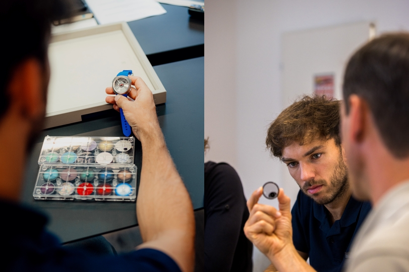 另一邊廂的Mechanics Edition則完全顛覆傳統,以數位連網技術打破腕錶定義。機芯由SEQUENT團隊協助開發,具備指針顯示與多項數碼功能,包括雙時區GMT、精準至1/100秒的追針計時、萬年曆及專屬比賽模式。腕錶具備震動提示、團隊訊息提示與比賽倒數功能,甚至能與iOS及Android裝置同步,支援獨立運作,續航能力強勁,在時間顯示模式下最長可達12個月,連網模式亦可支撐6場F1大獎賽。外觀方面選用電光藍煙燻錶盤,加上Super-LumiNova®夜光陶瓷時標與夜光指針,科技與設計雙軌並行。