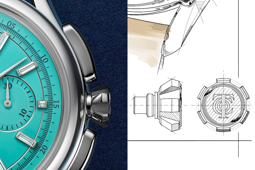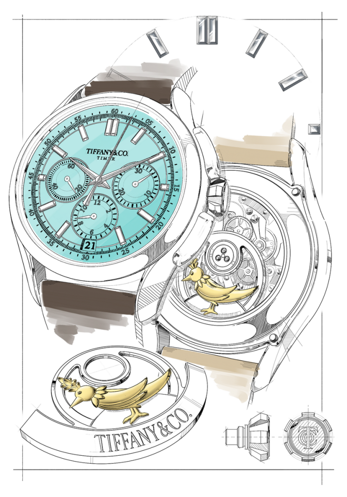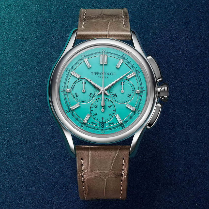 Tiffany保留了三眼計時經典佈局,無加入多餘複雜裝飾,選擇回歸實用本質。品牌過去亦曾銷售由Valjoux與Lemania提供機芯的計時錶,延續對機芯品質的選擇與信任,而非追求自製之名。
