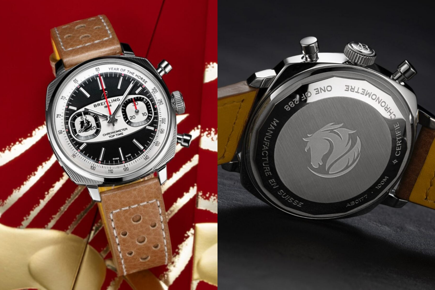 Breitling 以 Top Time 系列為基礎推出 B01 赤影黑騎限量版。枕形錶殼配黑白雙色錶盤,外圈測速計刻有「Year of the Horse」字樣。9 點位小盤與底蓋飾以黑騎圖案,設計低調而含蓄。