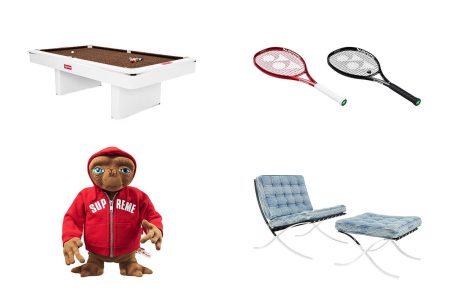 Damien Hirst,自1988年独立学生展览‘Freeze’以来,便成为当代艺术界的标志性人物。他的作品深入探讨生命、死亡与道德的界限,常以标志性的动物标本来表达其对存在主义的思考。本季Supreme特别选用两件他的代表作进行设计,其中《生者对死者无动于衷》是Hirst用福尔马林包裹的虎鲨,象征着生命的脆弱;而《黑羊与金角》则探讨宗教象征与死亡主题,透过金色羊角引发深思。